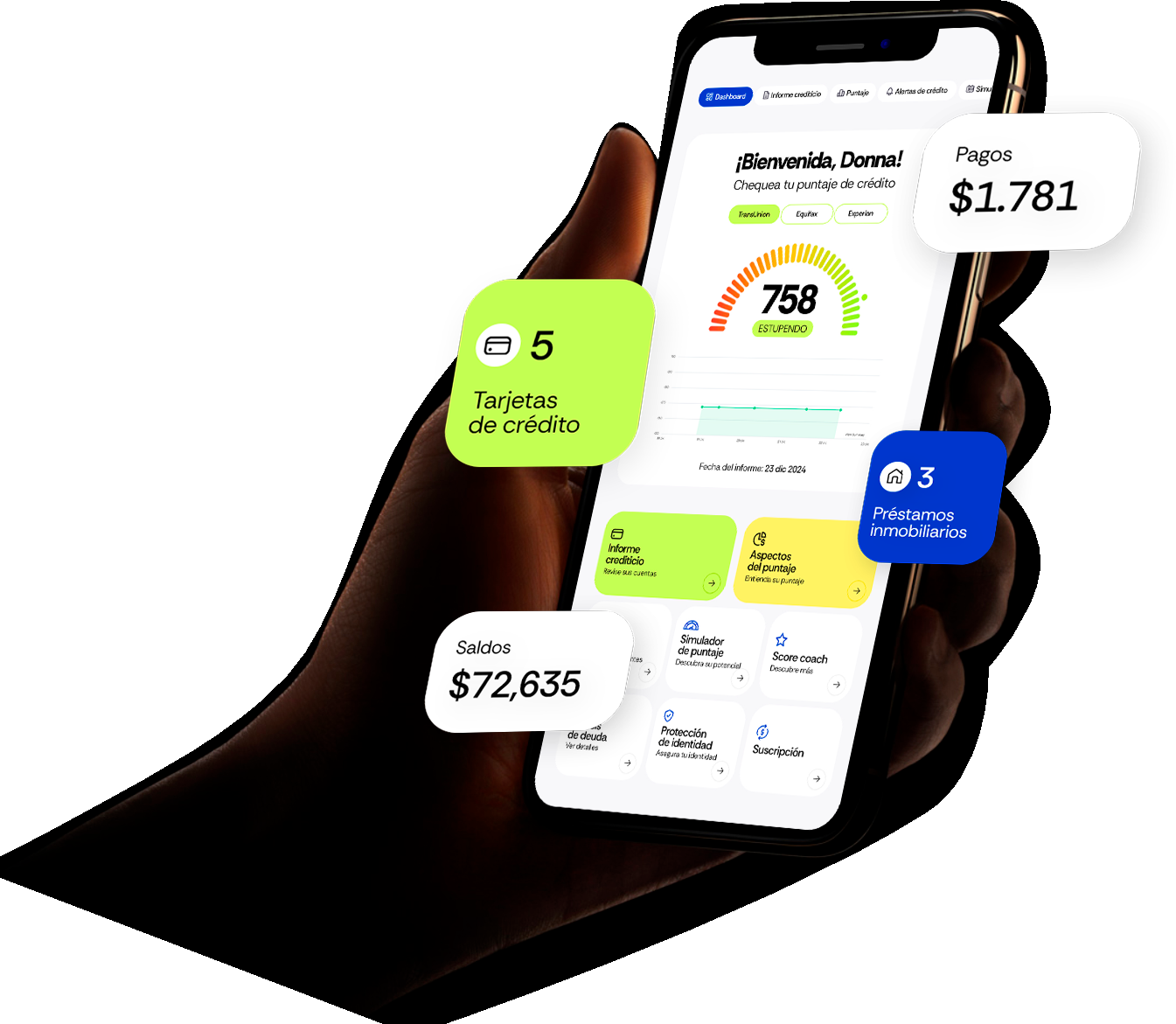 Te ofrecemos distintas funciones de monitoreo exhaustivo para ayudarte a monitorear errores en tu crédito, actividades sospechosas y deudas que te están costando más dinero del que crees. También podrás explorar cómo diferentes decisiones, como abrir una nueva cuenta podrían impactar tu puntaje de crédito. ¿Qué esperas para comenzar?